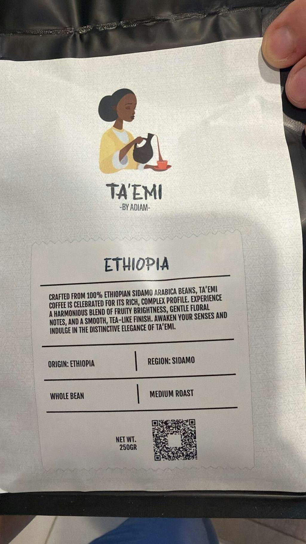 Crafted from 100% Ethiopian Fuji Hambella Arabica Beans. Ta'emi coffee offers a vibrant and captivating flavour experience. Savour notes of ripe stone fruit, sweet berries, and a hint of chocolate, perfectly balanced with a silky smooth finish.